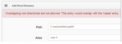 When trying to map c:\wsi\worklist\case04 to a separate root directory, an error message shows: