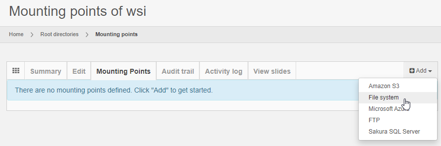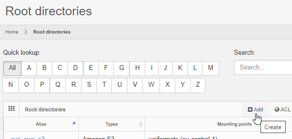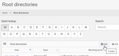 You add a new root directory by clicking on the “Add” button from the root directory overview page: