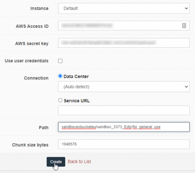 These keys are then used to configure the S3 mounting point at the PMA.core side: