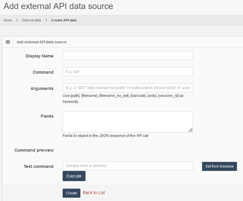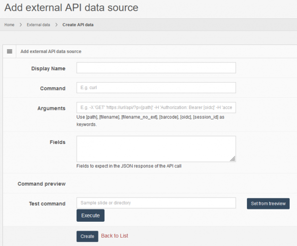 PMA.core allows you to link external rest APIs and use them as regular form data. This works by invoking a user-defined command line application which must exist in the system that hosts PMA.core. Such applications can be: