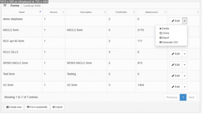 In the forms tab, the list of available forms is displayed. It is possible to create new forms or edit the existing ones.