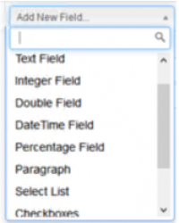 A new field can be added by selecting the desired field type from the “Add New Field” dropdown box: