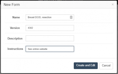 Adding a new form displays a pop up dialog that requests the basic information for the form. Once this data is provided, the form designer is displayed.