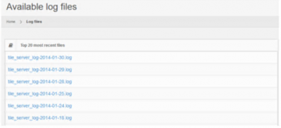 The log file section provides access to the raw log files produced by the server.