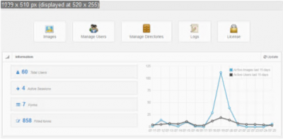 Clicking on the chart brings up a historical (since system inception) chart of both consulted slides and user sessions (on a monthly basis):