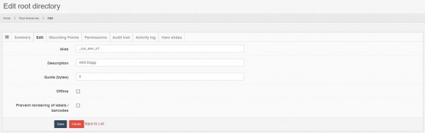 | Alias | The unique name or alias for the root directory |
