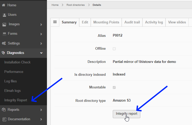When you suspect certain slides in a particular root directory have become corrupted, you can run an integrity check on a particular folder: