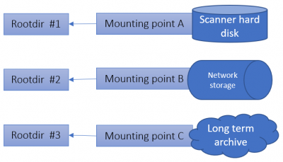 Since PMA.core 2, a root directory is defined by one or more mounting points. This facilitates geo-replication scenarios.