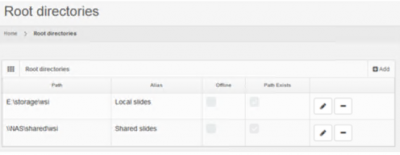 In order for PMA.core to show content, you need to set up root directories. A root directory is a starting location from which your various whole slide images will be hosted.