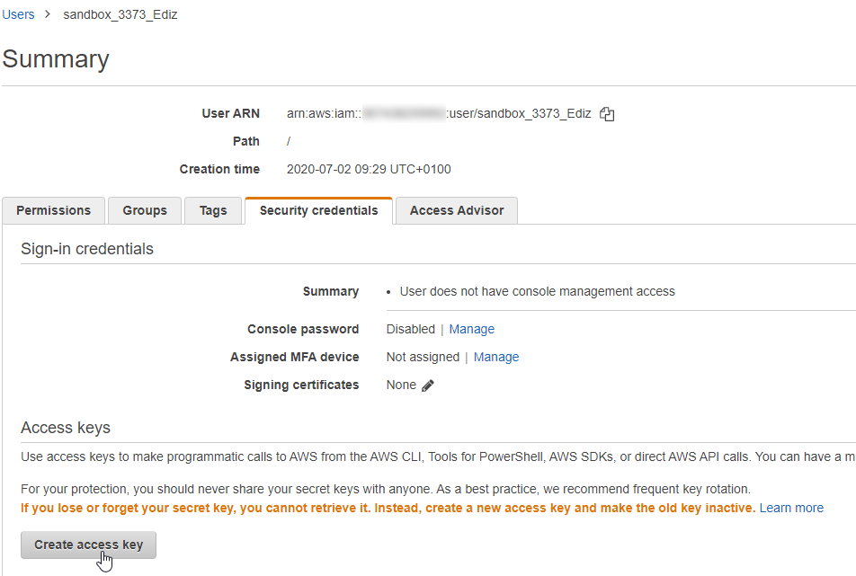 You can then create a pair of dedicated access / secret keys for the new entity: