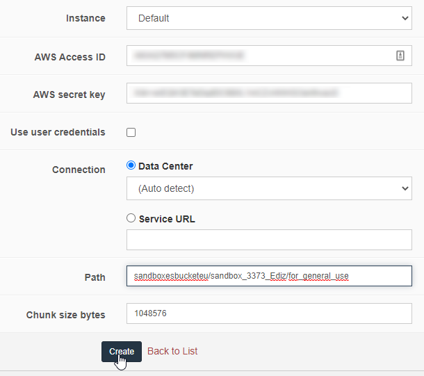 These keys are then used to configure the S3 mounting point at the PMA.core side: