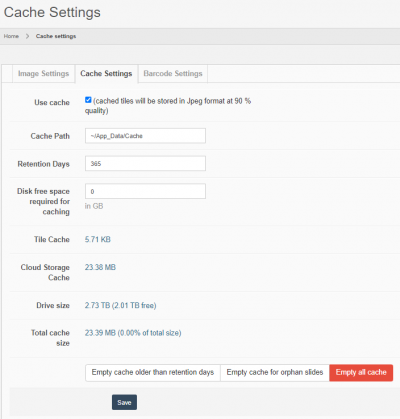 | Cache path | The directory where cache files are stored. This is a web application relative path |