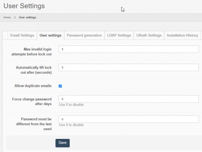Force change password after days Require users to change password after the specified amount of days