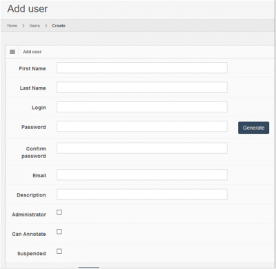 To add a user click on the “Add” button on the top right of the table.