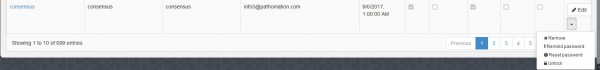 Clicking on the down arrow in the user's list page you can see additional actions that can be performed on a user. Those actions are: