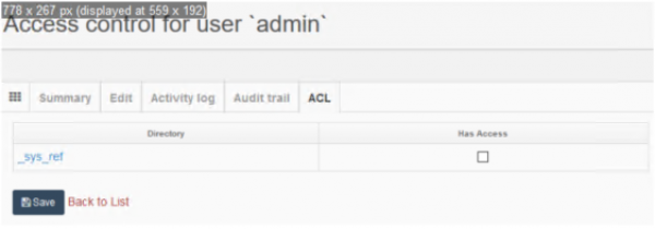 The Access rights (ACL) section allows control over the private root directories the particular user may access. If no private root directories are defined, this list will be empty.