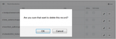 Similarly, you may delete root directories by clicking on the delete icon behind each entry. A confirmation prompt at this point will give you one last chance to reconsider: