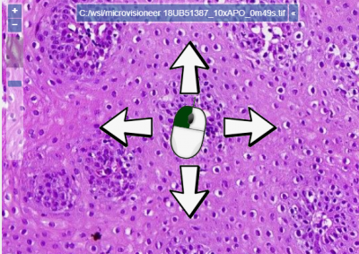 You may also use the thumbnail image as a quick way to navigate to a particular area of your (already zoomed in) slide: just click on the area in the thumbnail, and the viewport automatically navigates to the selected region.