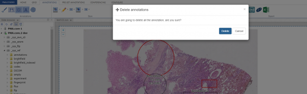 PMA.studio allows you to edit, delete individual, delete all, modify and merge annotations. Once you create annotations, they are added to the annotation tray panel, which allows you to select an annotation and perform certain actions on it.