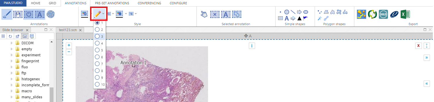 PMA.Studio provides different set of annotations tool you can choose from and draw annotations: