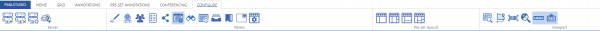 PMA.studio ribbon consists of number of tabs that hold set of controls to perform different actions on selected slides.