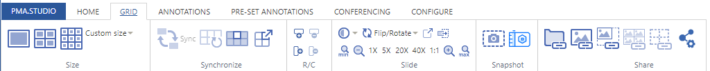 PMA.studio uses viewport as a grid system. The user interface provides a separate tab “GRID” to perform grid operations on the viewport.