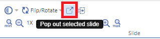 This button opens the current selected slide into a separate viewport tab