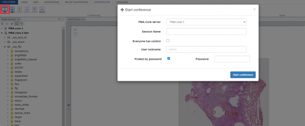 PMA.studio can interface with PMA.live for live broadcast sessions. Think of it as desktop sharing for whole slide images, but better (there's much less of a delay compared to conventional desktop sharing approaches).